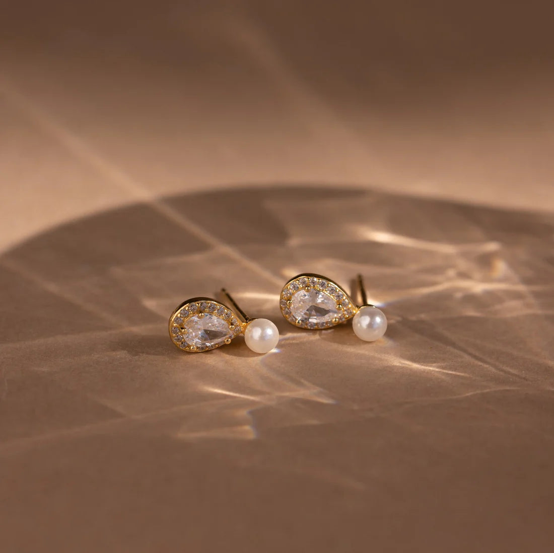 - Featuring ~12mm Drop Earrings with a ~3.5mm Pearl Gemstone and ~8.5mm Drop CZ Diamond Teardrop